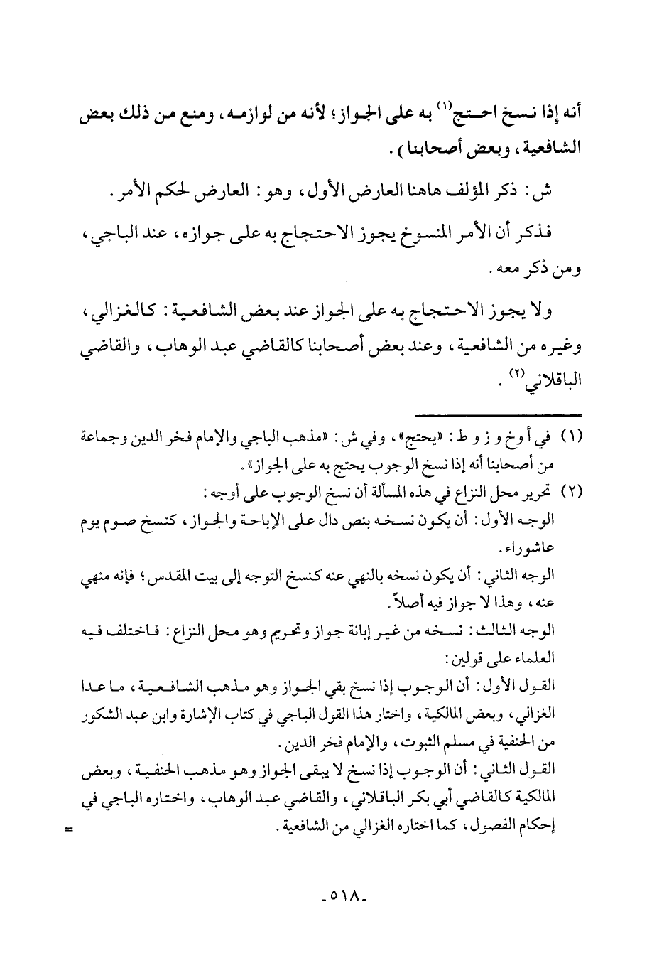 (١) في أوخ وز وط: "يحتج"، وفي ش: "مذهب الباجي والإمام فخر الدين وجماعة من أصحابنا أنه إذا نسخ الوجوب يحتج به على الجواز".