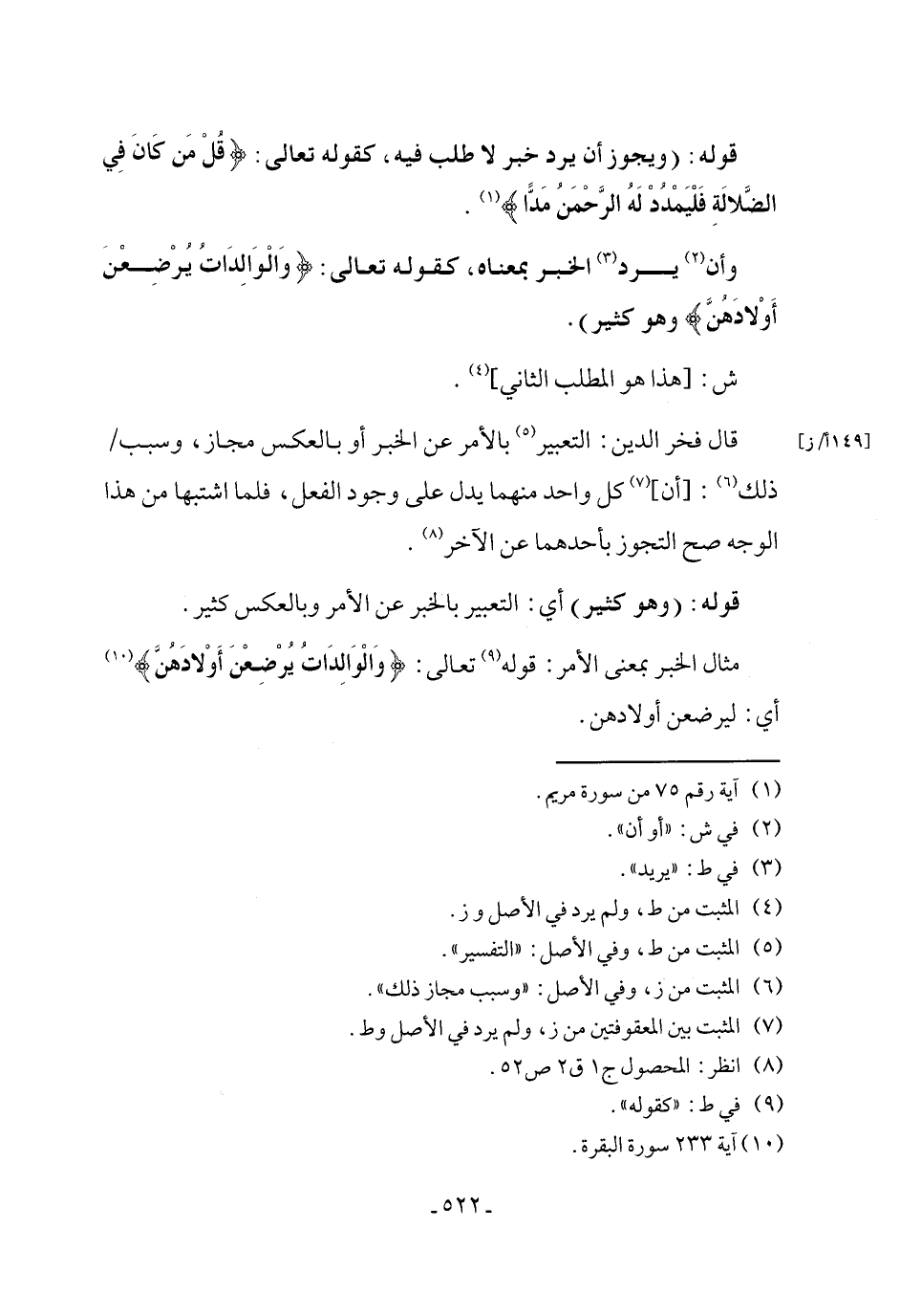 (٨) انظر: المحصول ج ١ ق ٢ ص ٥٢.