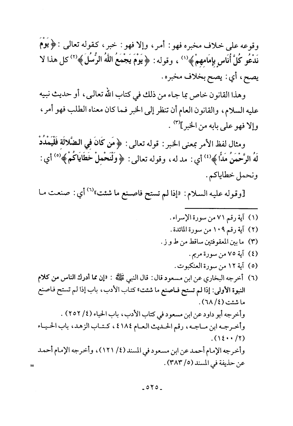 (٦) أخرجه البخاري عن ابن مسعود قال: قال النبي - صلى الله عليه وسلم -: "إن مما أدرك الناس من كلام النبوة الأولى: إذا لم تستح فاصنع ما شئت" كتاب الأدب، باب إذا لم تستح فاصنع ما شئت (٤/ ٦٨).