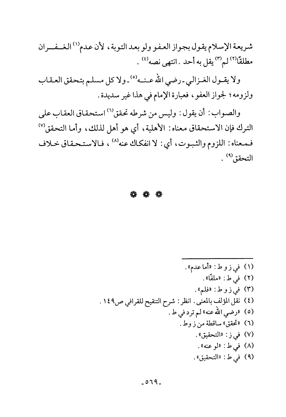 ولا يقول الغزالي - رضي الله عنه (٥) - ولا كل مسلم بتحقق العقاب ولزومه؛ لجواز العفو, فعبارة الإمام في هذا غير سديدة.