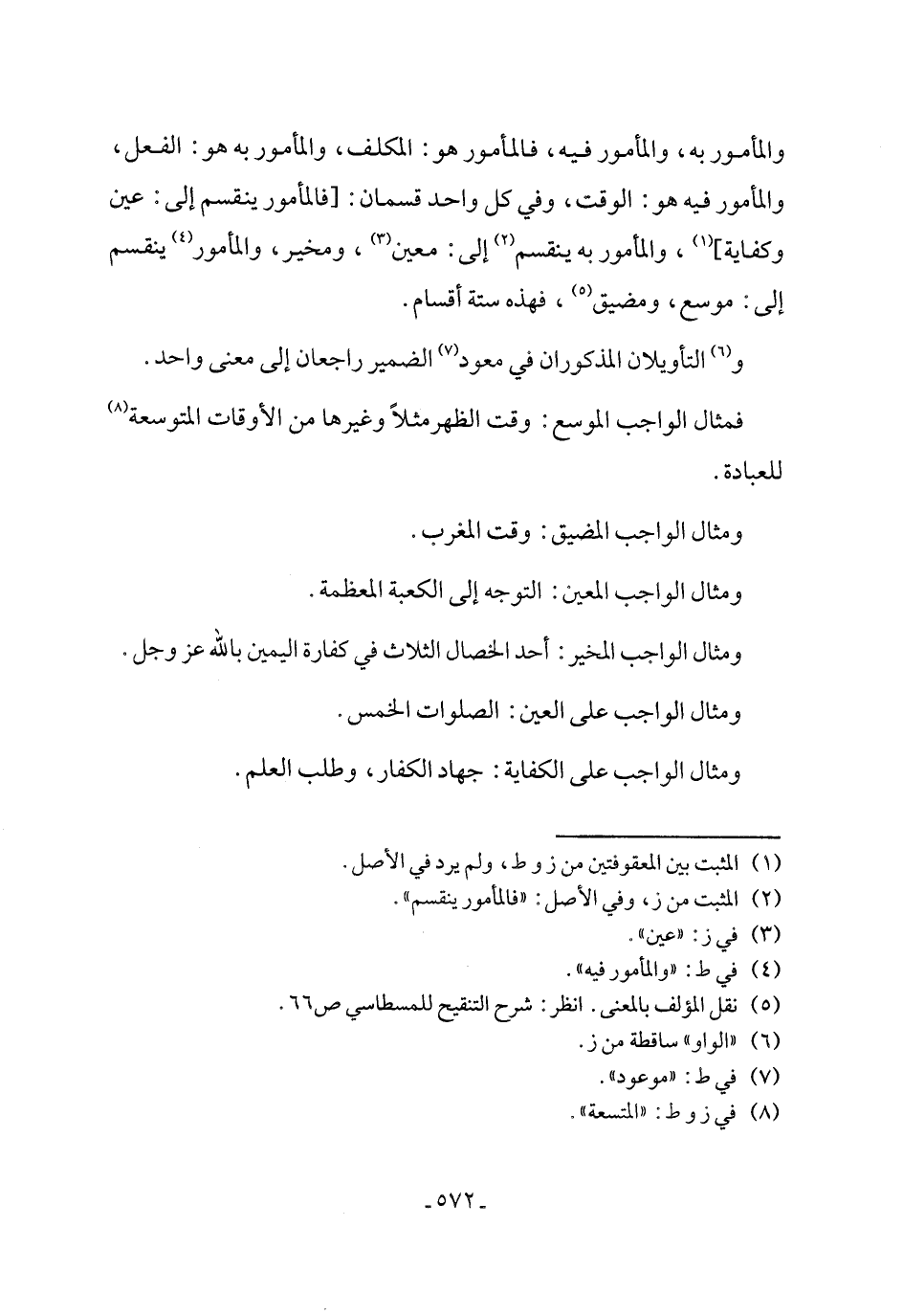 فمثال الواجب الموسع: وقت الظهر مثلاً وغيرها من الأوقات المتوسعة (٨) للعبادة.