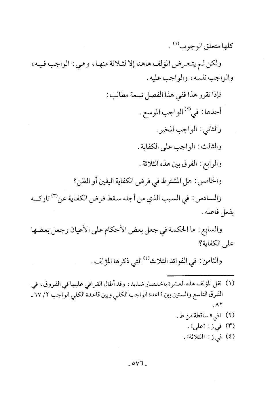 (١) نقل المؤلف هذه العشرة باختصار شديد، وقد أطال القرافي عليها في الفروق، في الفرق التاسع والستين بين قاعدة الواجب الكلي وبين قاعدة الكلي الواجب ٢/ ٦٧ - ٨٢.