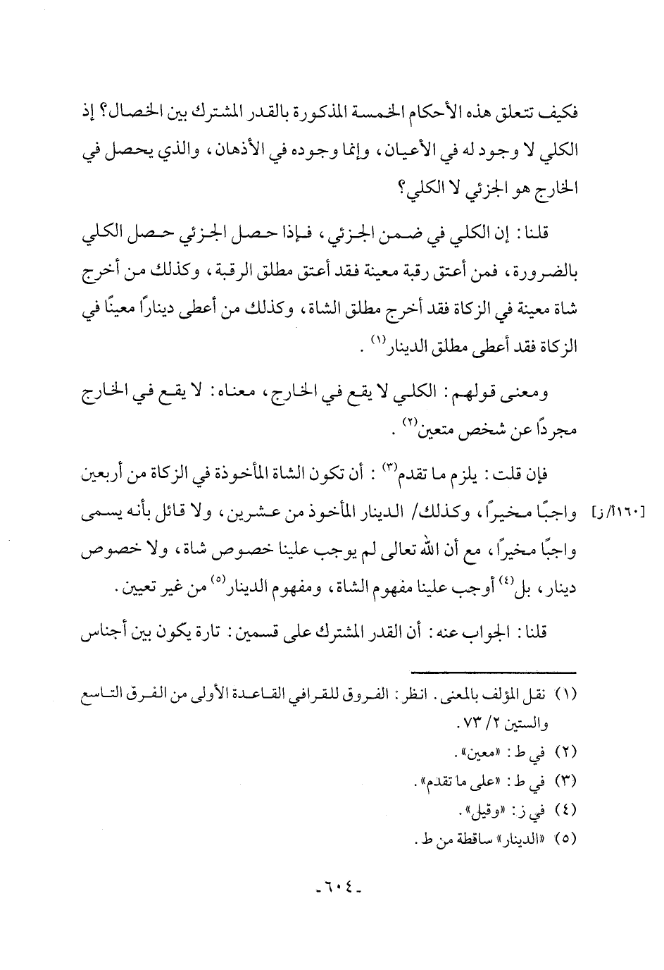 قلنا: إن الكلي في ضمن الجزئي، فإذا حصل الجزئي حصل الكلي بالضرورة، فمن أعتق رقبة معينة فقد أعتق مطلق الرقبة، وكذلك من أخرج شاة معينة في الزكاة فقد أخرج مطلق الشاة، وكذلك من أعطى دينارًا معينًا في الزكاة فقد أعطى مطلق الدينار (١).