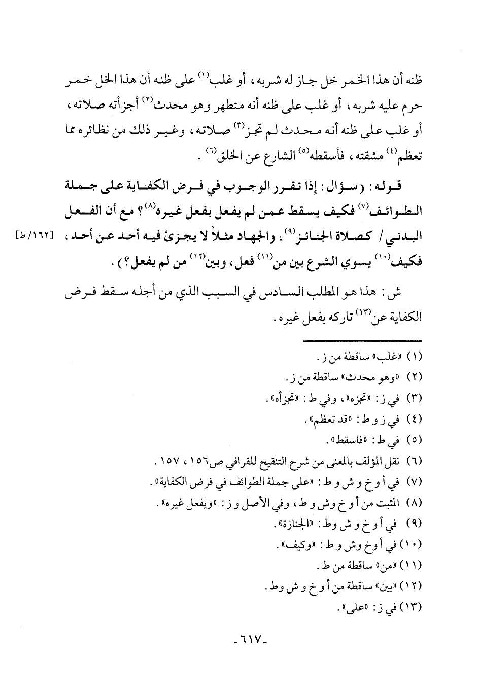 ش: هذا هو المطلب السادس في السبب الذي من أجله سقط فرض الكفاية عن (١٣) تاركه بفعل غيره.