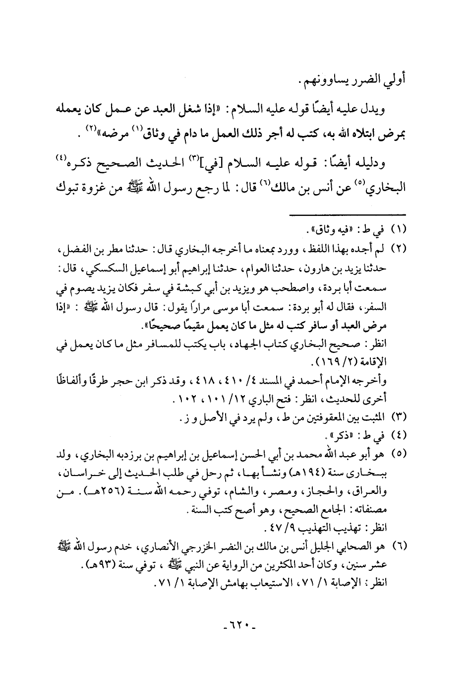 انظر: صحيح البخاري كتاب الجهاد، باب يكتب للمسافر مثل ما كان يعمل في الإقامة (٢/ ١٦٩).