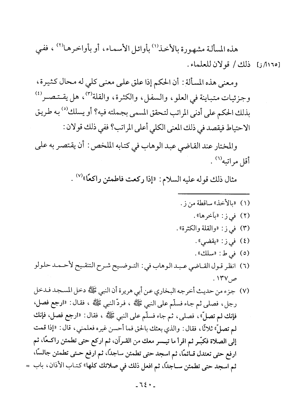 (٦) انظر قول القاضي عبد الوهاب في: التوضيح شرح التنقيح لأحمد حلولو ص ١٣٧.