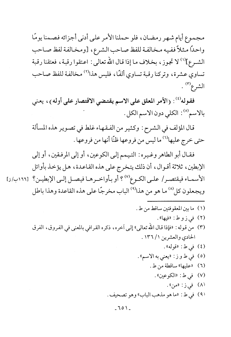 قال المؤلف في الشرح: وكثير من الفقهاء غلط في تصوير هذه المسألة حتى خرج عليها (٦) ما ليس من فروعها ظنًا أنها من فروعها.