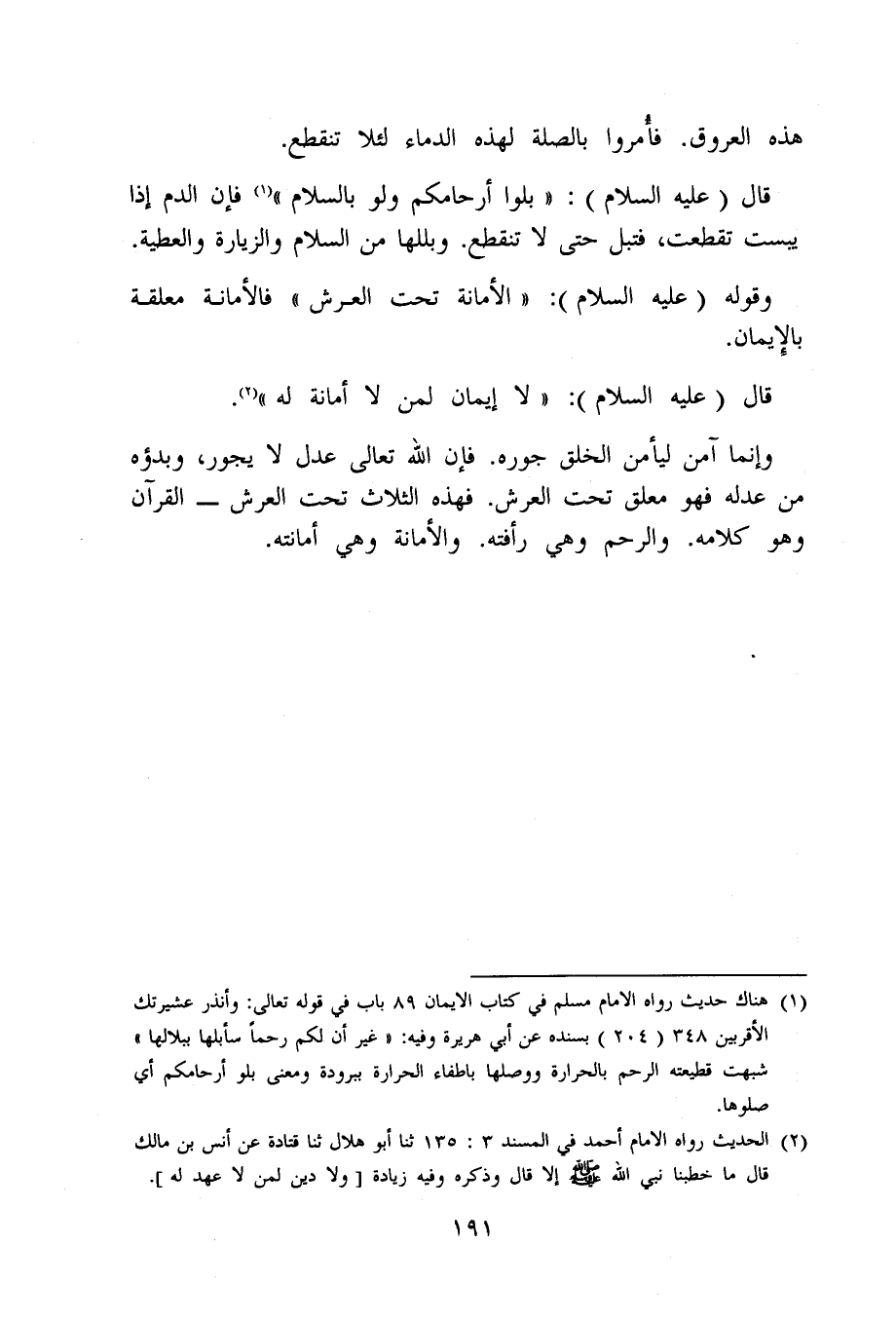 قَالَ صلى الله عَلَيْهِ وَسلم لَا إِيمَان لمن لَا أَمَانَة لَهُ