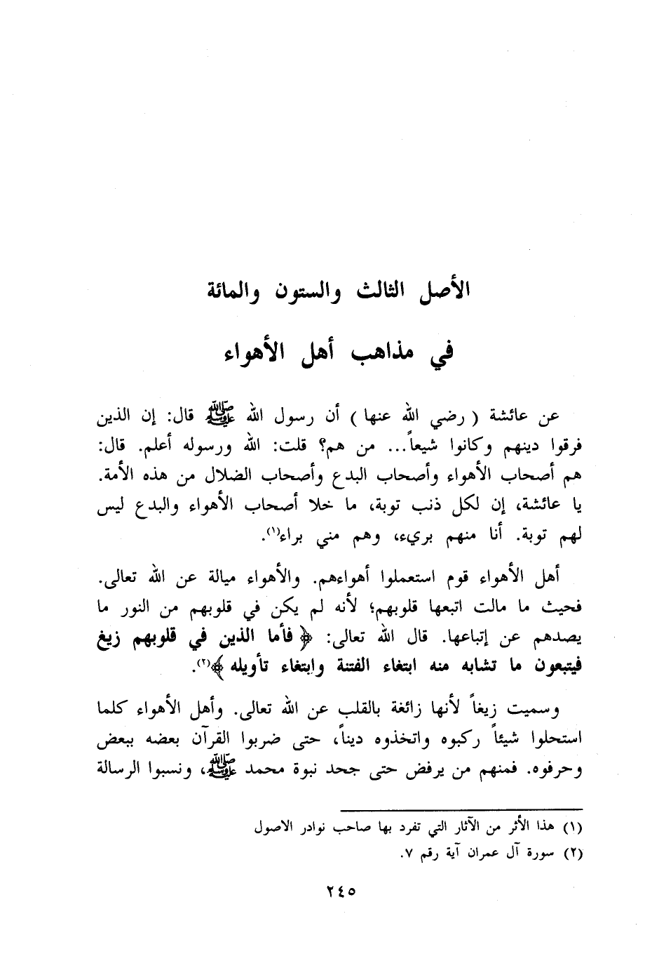 فِي مَذَاهِب أهل الْأَهْوَاء