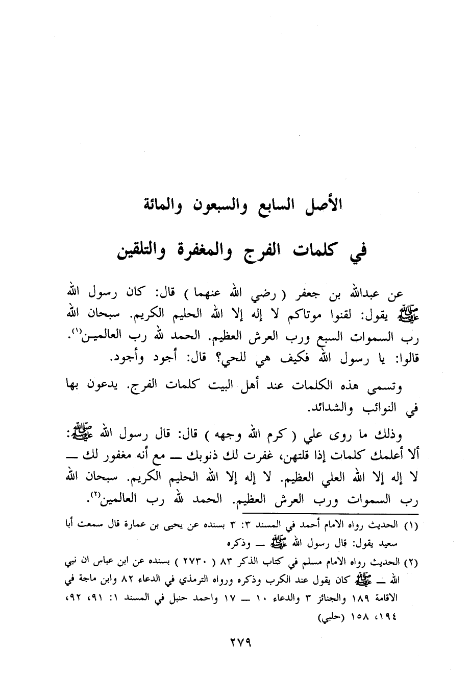 - الأَصْل السَّابِع وَالسَّبْعُونَ وَالْمِائَة