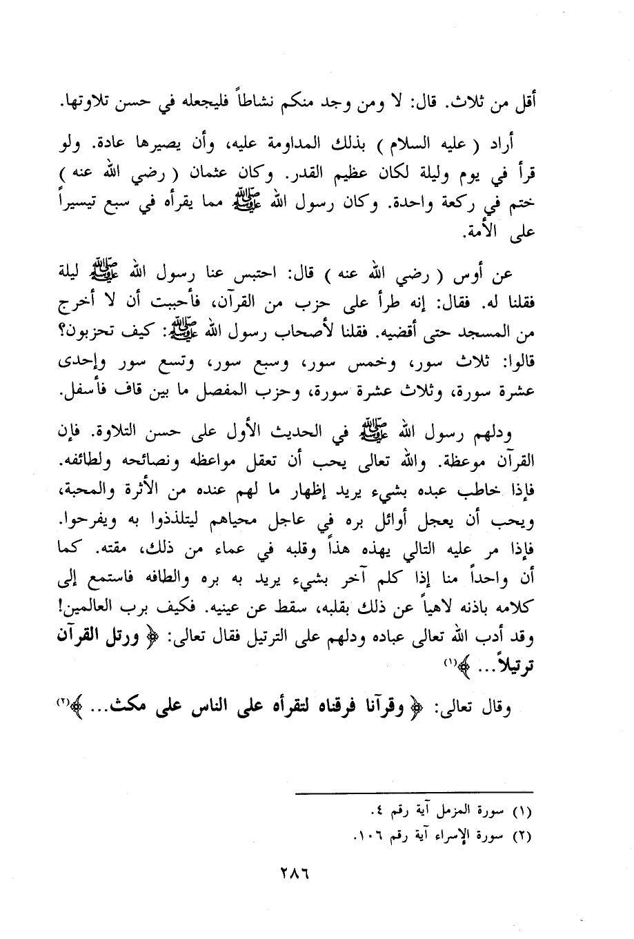 وَقَالَ تَعَالَى وقرآنا فرقناه لتقرأه على النَّاس على مكث