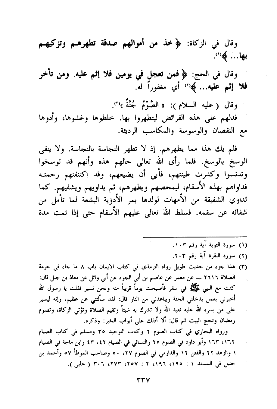 وَقَالَ فِي الزَّكَاة خُذ من أَمْوَالهم صَدَقَة تطهرهُمْ وتزكيهم بهَا