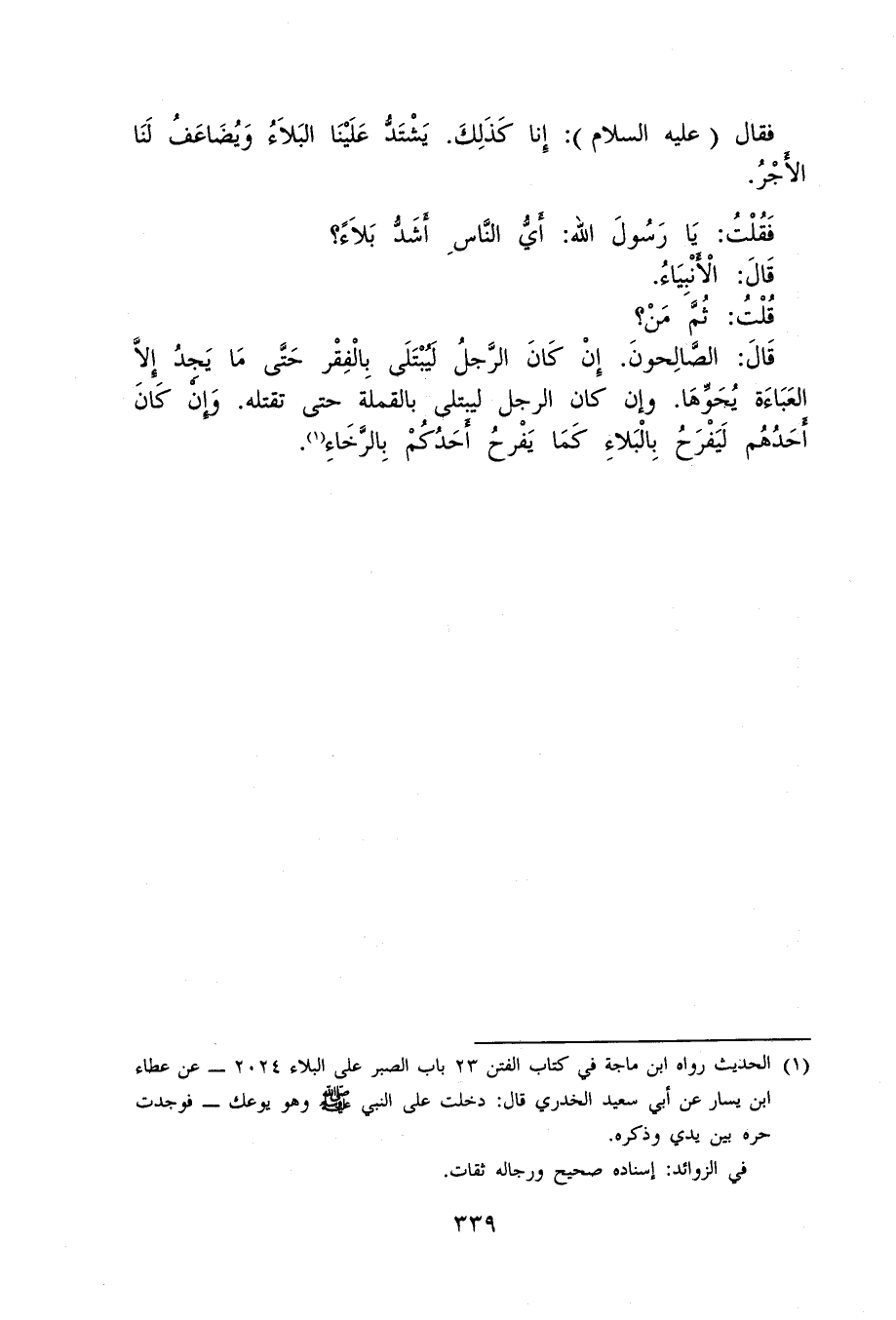قَالَ الصالحون إِن كَانَ الرجل ليبتلى بالفقر حَتَّى مَا يجد إِلَّا العباءة يحوها وَإِن كَانَ الرجل ليبتلى بالقملة حَتَّى تقتله وَإِن كَانَ أحدهم ليفرح بالبلاء كَمَا يفرح أحدكُم بالرخاء