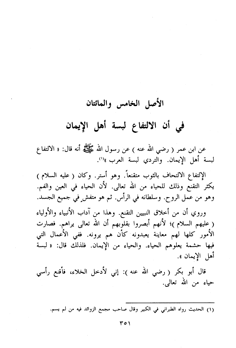 فِي أَن الالتفاع لبسة أهل الْإِيمَان