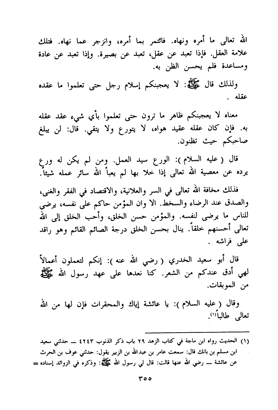 وَلذَلِك قَالَ صلى الله عَلَيْهِ وَسلم لَا يعجبنكم إِسْلَام رجل حَتَّى تعلمُوا مَا عقده عقله