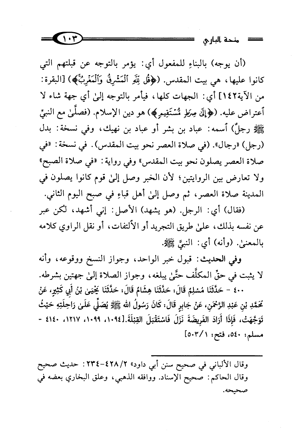 وفي الحديث: قبول خبر الواحد، وجواز النسخ ووقوعه، وأنه لا يثبت في حقّ المكلف حتَّى يبلغه، وجواز الصلاة إلى جهتين بشرطه.