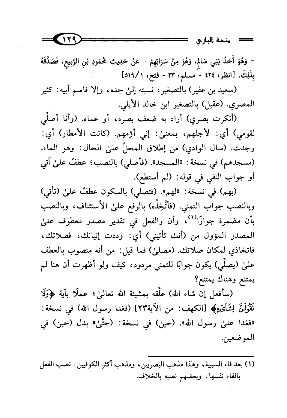 [انظر: 424 - مسلم: 33 - فتح: 1/ 519]