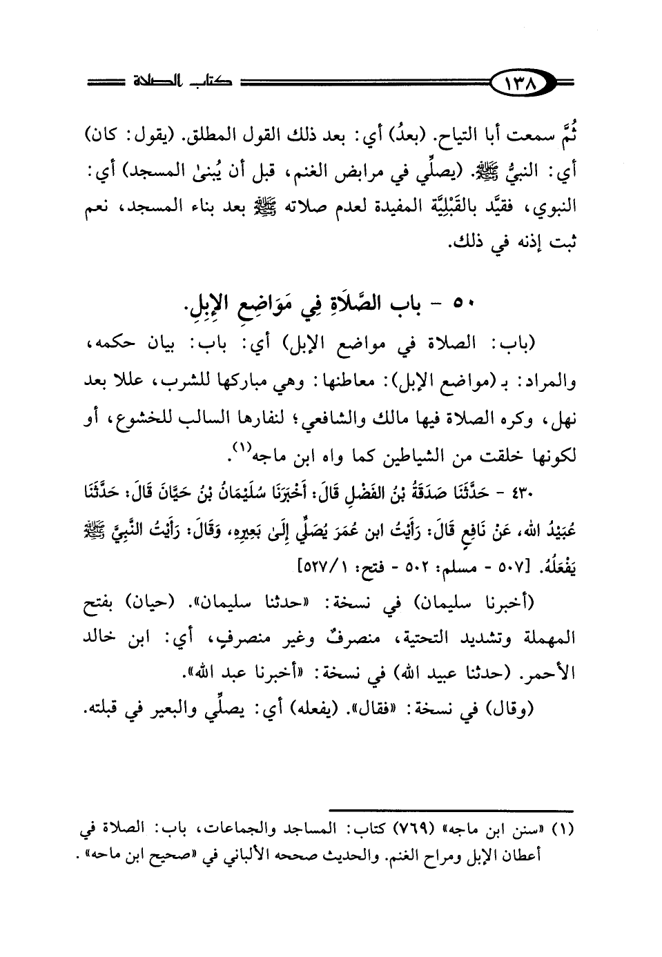 50 - بَابُ الصَّلاةِ فِي مَوَاضِعِ الإِبِلِ