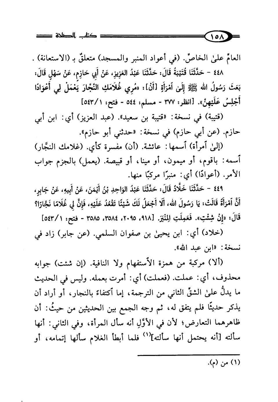 448 - حَدَّثَنَا قُتَيْبَةُ بْنُ سَعِيدٍ، قَالَ: حَدَّثَنَا عَبْدُ العَزِيزِ، حَدَّثَنِي أَبُو حَازِمٍ، عَنْ سَهْلٍ، قَالَ: بَعَثَ رَسُولُ اللَّهِ صَلَّى اللهُ عَلَيْهِ وَسَلَّمَ إِلَى امْرَأَةٍ: "مُرِي غُلامَكِ النَّجَّارَ، يَعْمَلْ لِي أَعْوَادًا، أَجْلِسُ عَلَيْهِنَّ".