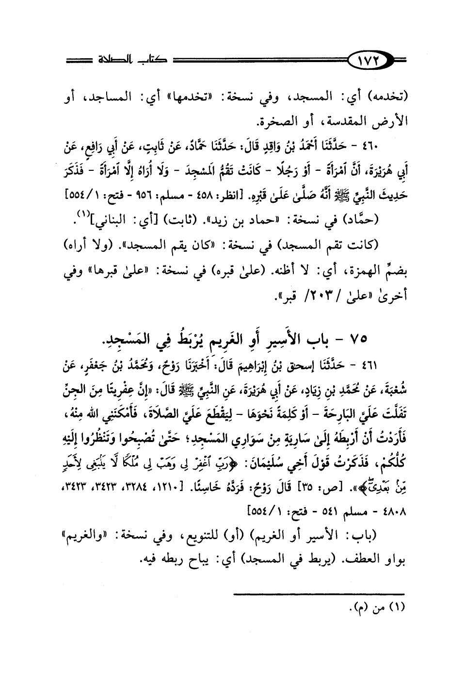 75 - بَابُ الأَسِيرِ - أَو الغَرِيمِ - يُرْبَطُ فِي المَسْجِدِ