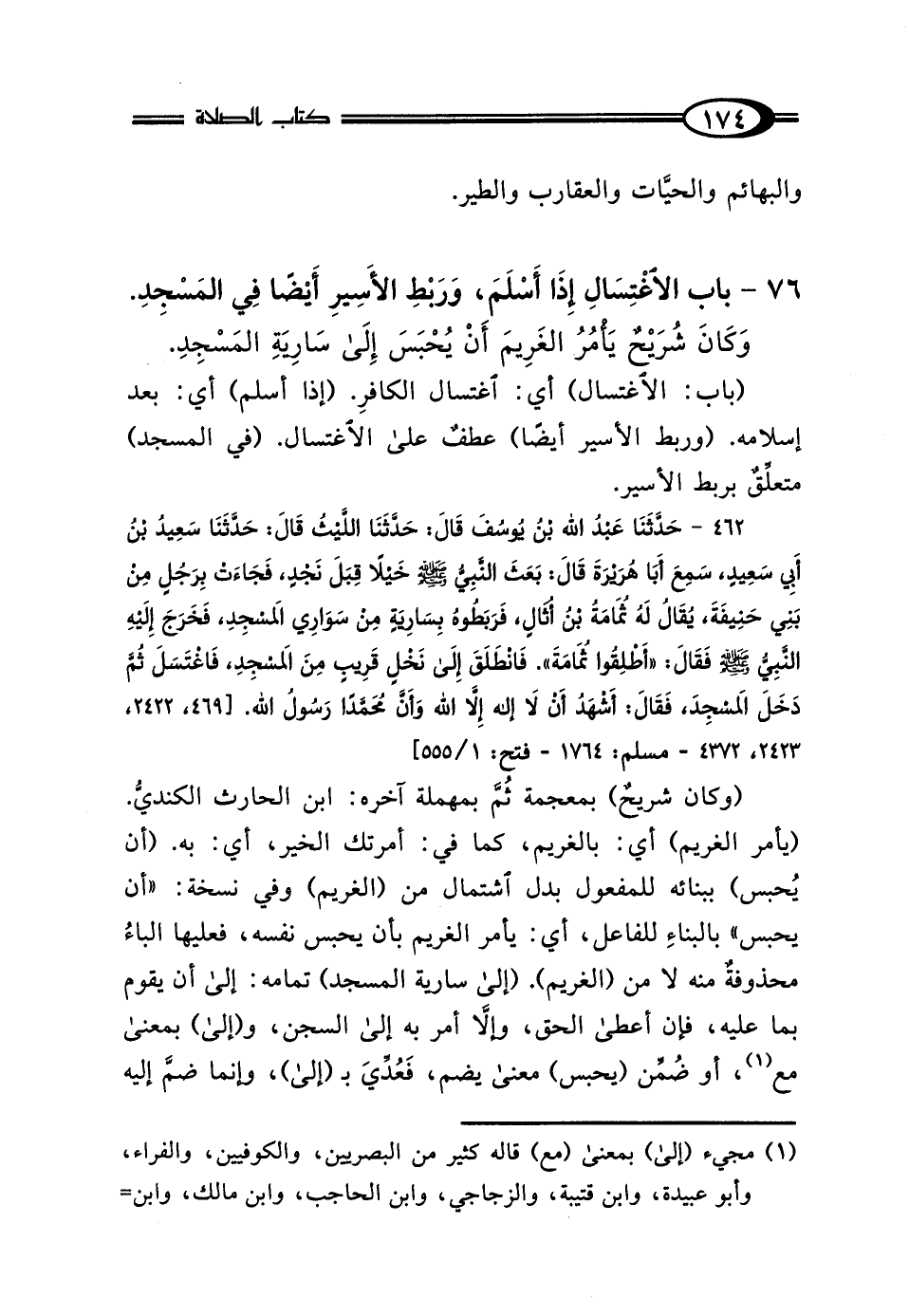 76 - بَابُ الاغْتِسَالِ إِذَا أَسْلَمَ، وَرَبْطِ الأَسِيرِ أَيْضًا فِي المَسْجِدِ