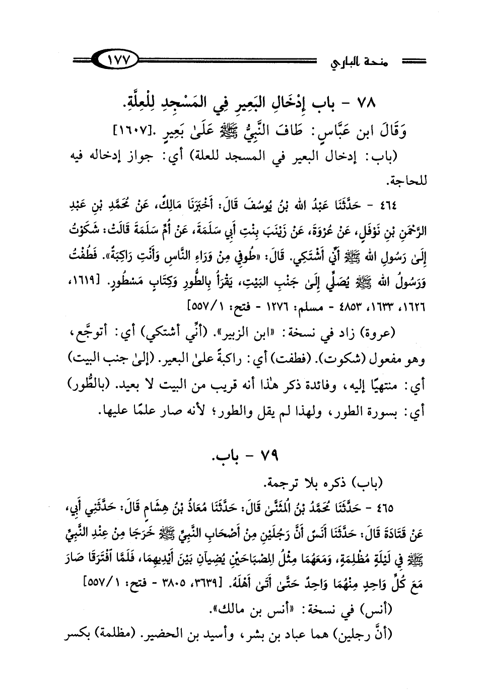 78 - بَابُ إِدْخَالِ البَعِيرِ فِي المَسْجِدِ لِلْعِلَّةِ