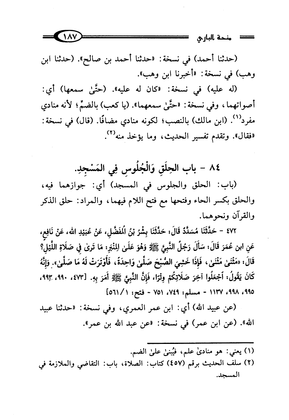 84 - بَابُ الحِلَقِ وَالجُلُوسِ فِي المَسْجِدِ