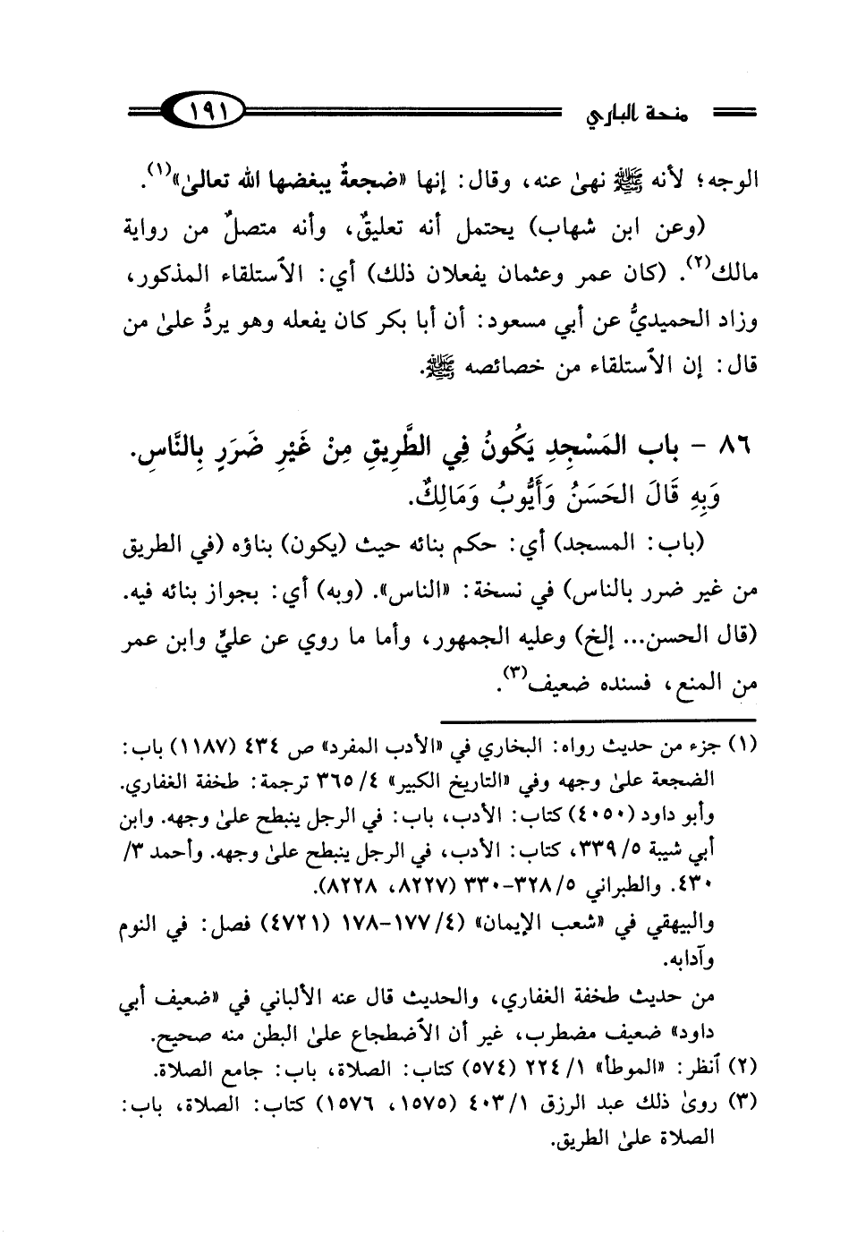 86 - بَابُ المَسْجِدِ يَكُونُ فِي الطَّرِيقِ مِنْ غَيْرِ ضَرَرٍ بِالنَّاسِ