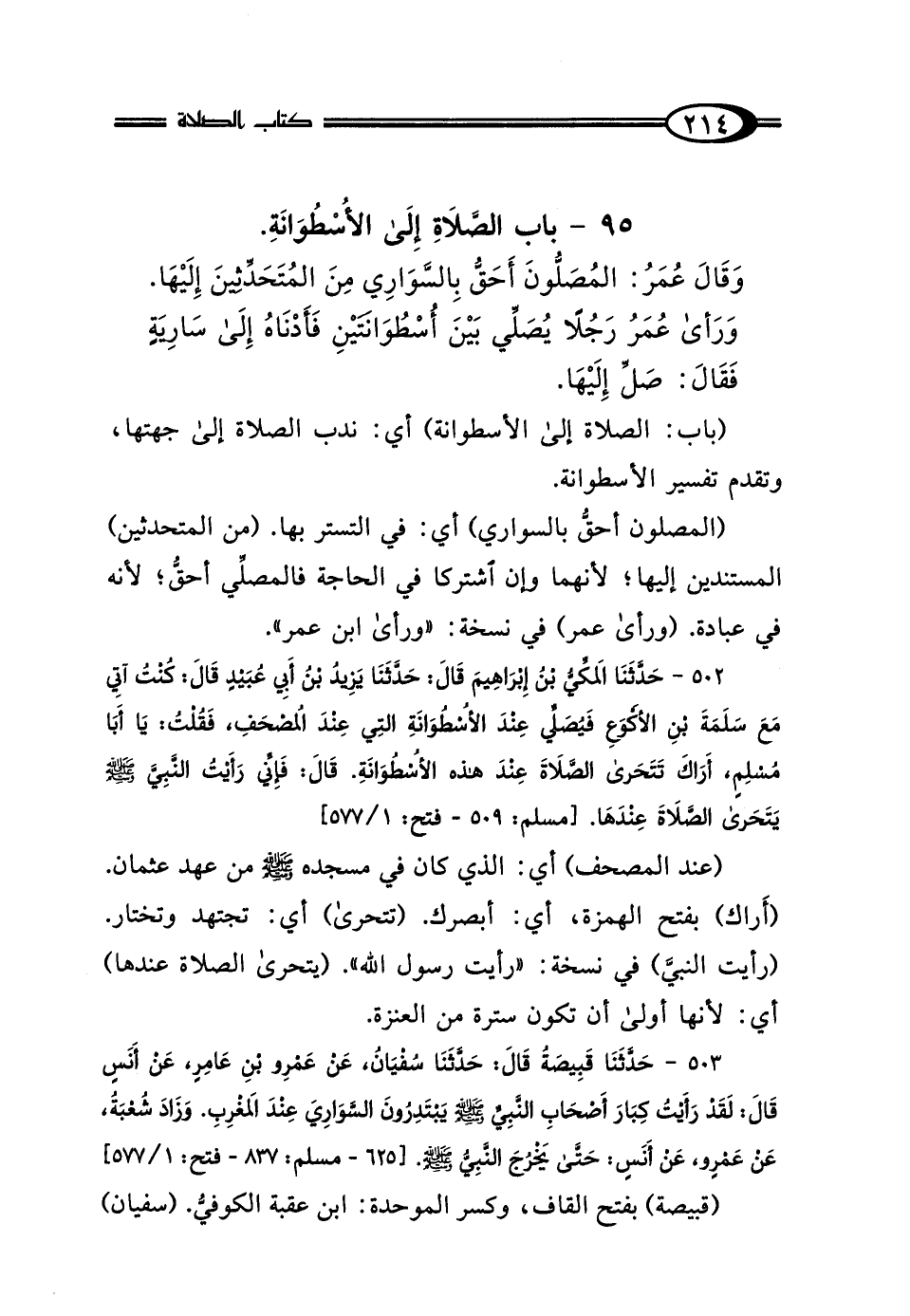 95 - بَابُ الصَّلاةِ إِلَى الأُسْطُوَانَةِ