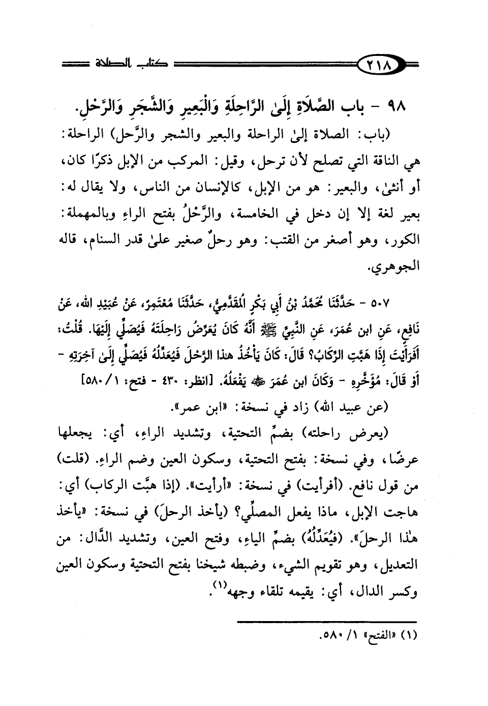 98 - بَابُ الصَّلاةِ إِلَى الرَّاحِلَةِ، وَالبَعِيرِ وَالشَّجَرِ وَالرَّحْلِ