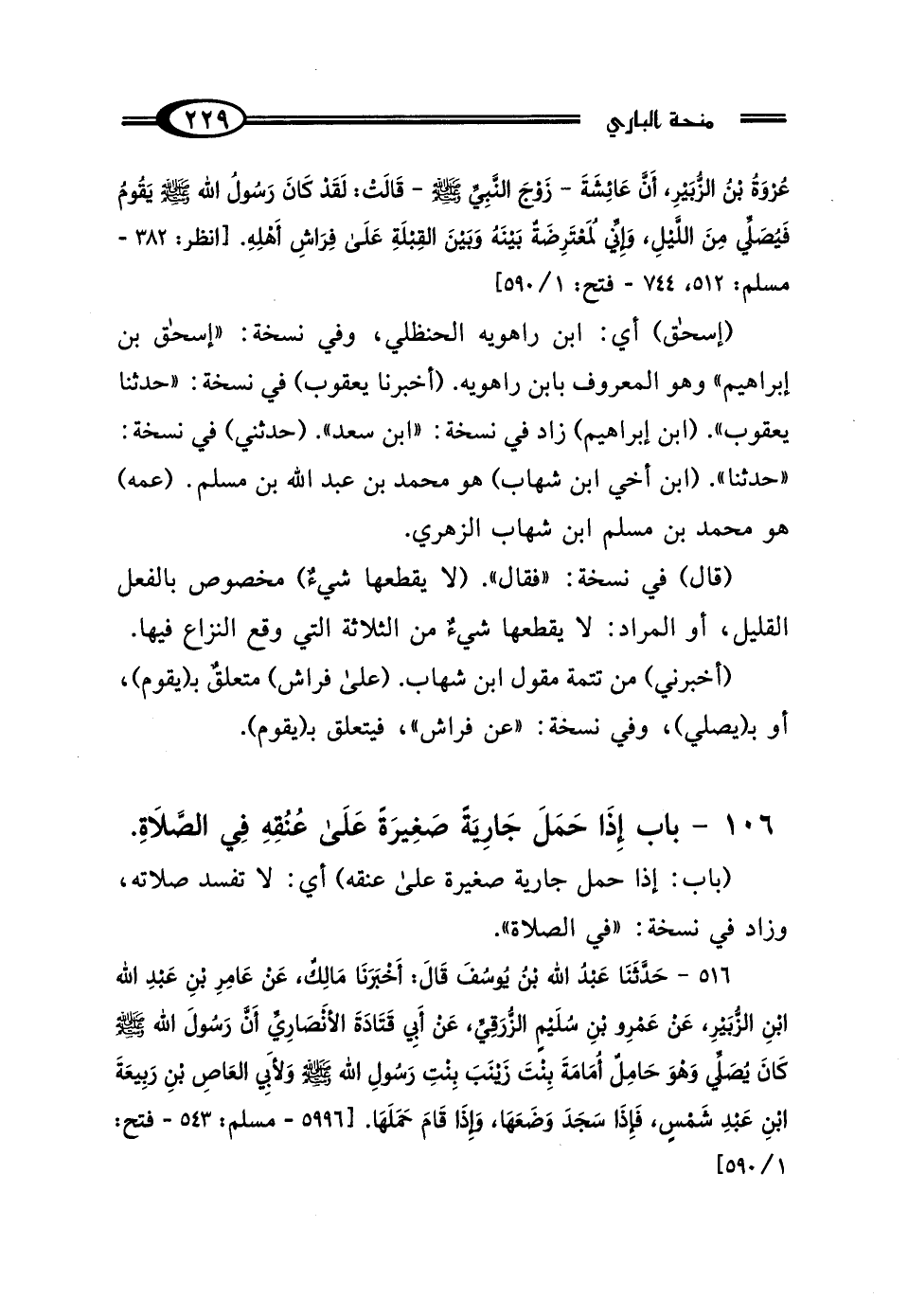 106 - بَابُ إِذَا حَمَلَ جَارِيَةً صَغِيرَةً عَلَى عُنُقِهِ فِي الصَّلاةِ