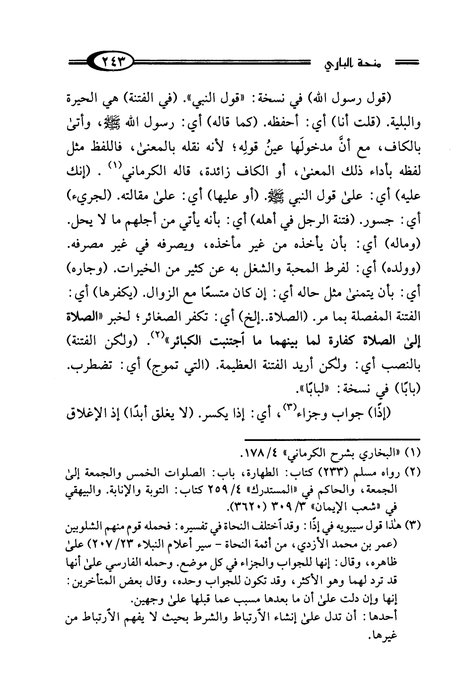 (¬1) "البخاري بشرح الكرماني" 4/ 178.