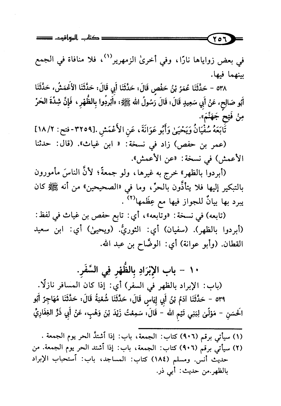 538 - حَدَّثَنَا عُمَرُ بْنُ حَفْصِ بْنِ غِيَاثٍ، قَالَ: حَدَّثَنَا أَبِي، قَالَ: حَدَّثَنَا الأَعْمَشُ، حَدَّثَنَا أَبُو صَالِحٍ، عَنْ أَبِي سَعِيدٍ، قَالَ: قَالَ رَسُولُ اللَّهِ صَلَّى اللهُ عَلَيْهِ وَسَلَّمَ: "أَبْرِدُوا بِالظُّهْرِ، فَإِنَّ شِدَّةَ الحَرِّ مِنْ فَيْحِ جَهَنَّمَ" تَابَعَهُ سُفْيَانُ، وَيَحْيَى، وَأَبُو عَوَانَةَ، عَنِ الأَعْمَشِ.