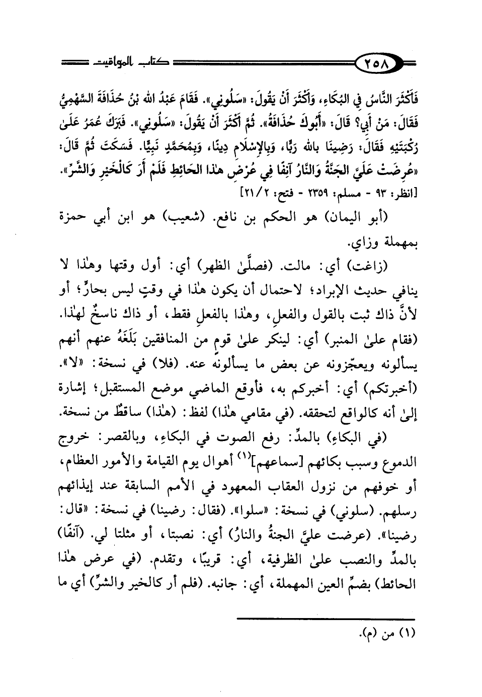 (أبو اليمان) هو الحكم بن نافع. (شعيب) هو ابن أبي حمزة بمهملة وزاي. (زاغت) أي: مالت. (فصلَّى الظهر) أي: أول وقتها وهذا لا ينافي حديث الإبراد؛ لاحتمال أن يكون هذا في وقتٍ ليس بحارٍّ؛ أو لأنَّ ذاك ثبت بالقول والفعلِ، وهذا بالفعلِ فقط، أو ذاك ناسخٌ لهذا. (فقام على المنبر) أي: لينكر على قومٍ من المنافقين بَلَغَهُ عنهم أنهم يسألونه ويعجزونه عن بعض ما يسألونه عنه. (فلا) في نسخة: "لا". (أخبرتكم) أي: أخبركم به، فأوقع الماضي موضع المستقبل؛ إشارة إلى أنه كالواقع لتحققه. (في مقامي هذا) لفظ: (هذا) ساقطٌ من نسخة.