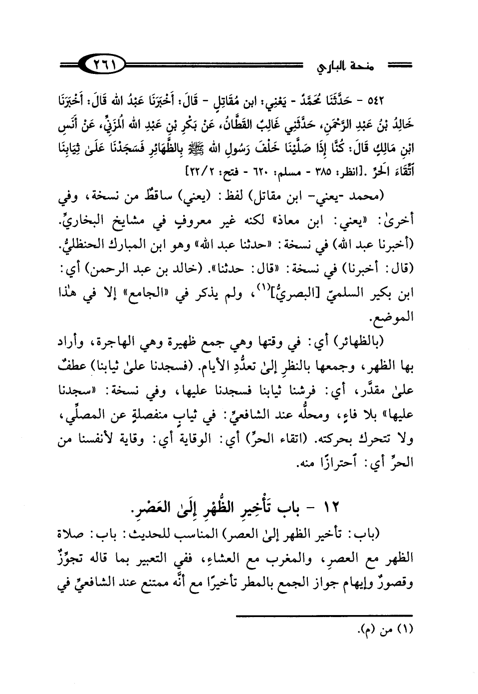 542 - حَدَّثَنَا مُحَمَّدٌ يَعْنِي ابْنَ مُقَاتِلٍ، قَالَ: أَخْبَرَنَا عَبْدُ اللَّهِ، قَالَ: أَخْبَرَنَا خَالِدُ بْنُ عَبْدِ الرَّحْمَنِ، حَدَّثَنِي غَالِبٌ القَطَّانُ، عَنْ بَكْرِ بْنِ عَبْدِ اللَّهِ المُزَنِيِّ، عَنْ أَنَسِ بْنِ مَالِكٍ، قَالَ: "كُنَّا إِذَا صَلَّيْنَا خَلْفَ رَسُولِ اللَّهِ صَلَّى اللهُ عَلَيْهِ وَسَلَّمَ بِالظَّهَائِرِ، فَسَجَدْنَا عَلَى ثِيَابِنَا اتِّقَاءَ الحَرِّ".