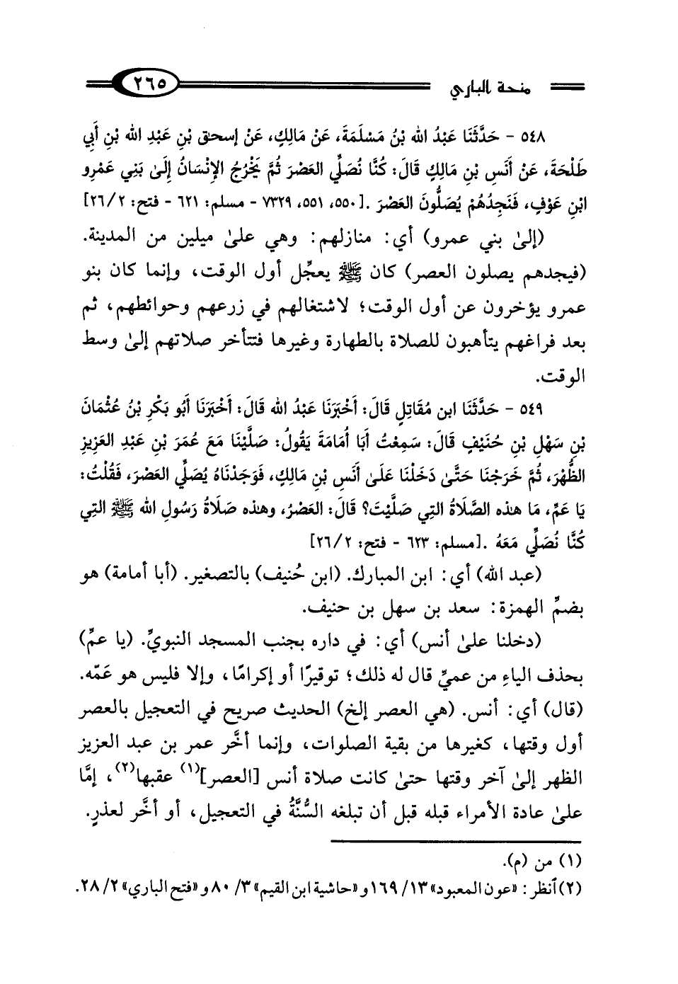 548 - حَدَّثَنَا عَبْدُ اللَّهِ بْنُ مَسْلَمَةَ، عَنْ مَالِكٍ، عَنْ إِسْحَاقَ بْنِ عَبْدِ اللَّهِ بْنِ أَبِي طَلْحَةَ، عَنْ أَنَسِ بْنِ مَالِكٍ، قَالَ: "كُنَّا نُصَلِّي العَصْرَ، ثُمَّ يَخْرُجُ الإِنْسَانُ إِلَى بَنِي عَمْرِو بْنِ عَوْفٍ، فَنَجِدُهُمْ يُصَلُّونَ العَصْرَ".