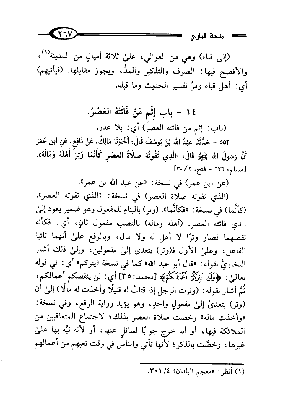 14 - بَابُ إِثْمِ مَنْ فَاتَتْهُ العَصْرُ