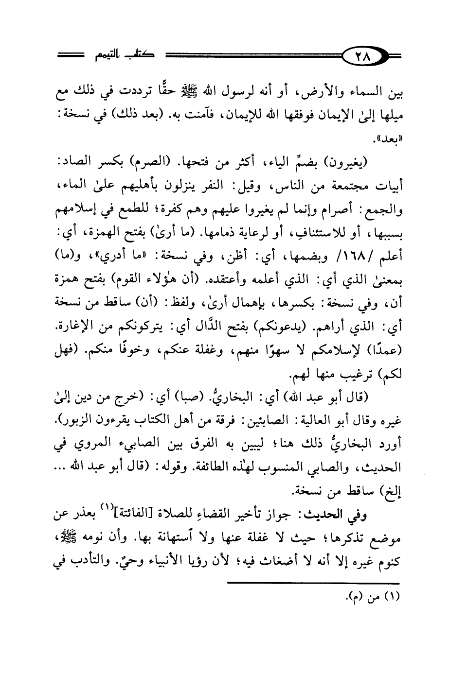 أورد البخاريُّ ذلك هنا؛ ليبين به الفرق بين الصابيء المروي في الحديث، والصابي المنسوب لهذه الطائفة. وقوله: (قال أَبو عبد الله ... إلخ) ساقط من نسخة.