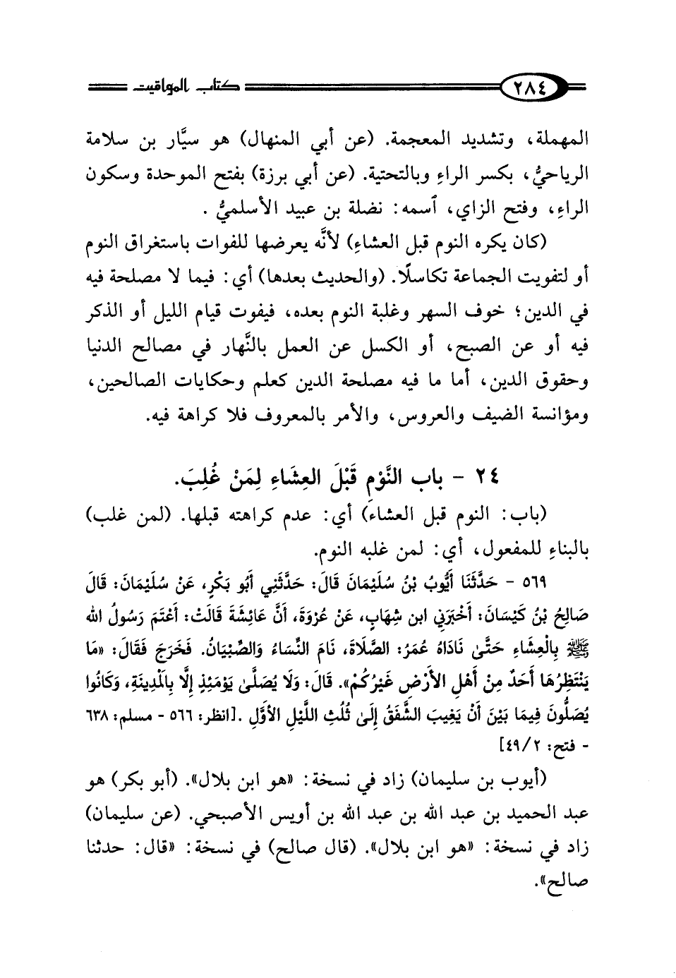 24 - بَابُ النَّوْمِ قَبْلَ العِشَاءِ لِمَنْ غُلِبَ