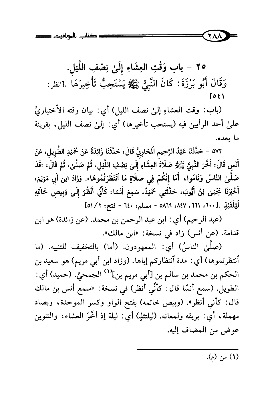 25 - بَابُ وَقْتِ العِشَاءِ إِلَى نِصْفِ اللَّيْلِ