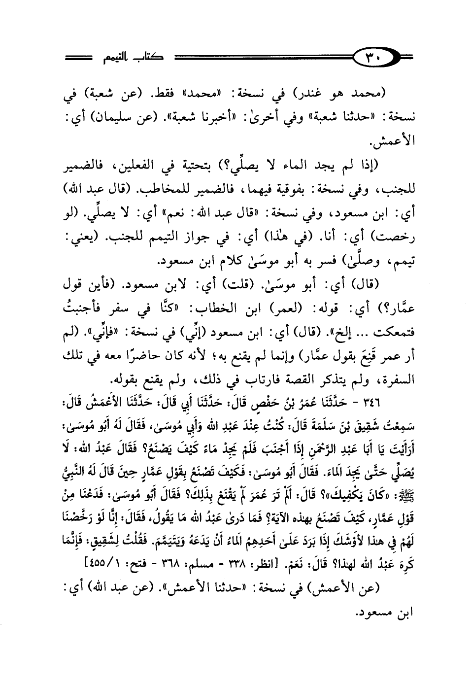 (محمد هو غندر) في نسخة: "محمد" فقط. (عن شعبة) في نسخة: "حدثنا شعبة" وفي أخرى: "أخبرنا شعبة". (عن سليمان) أي: الأعمش.