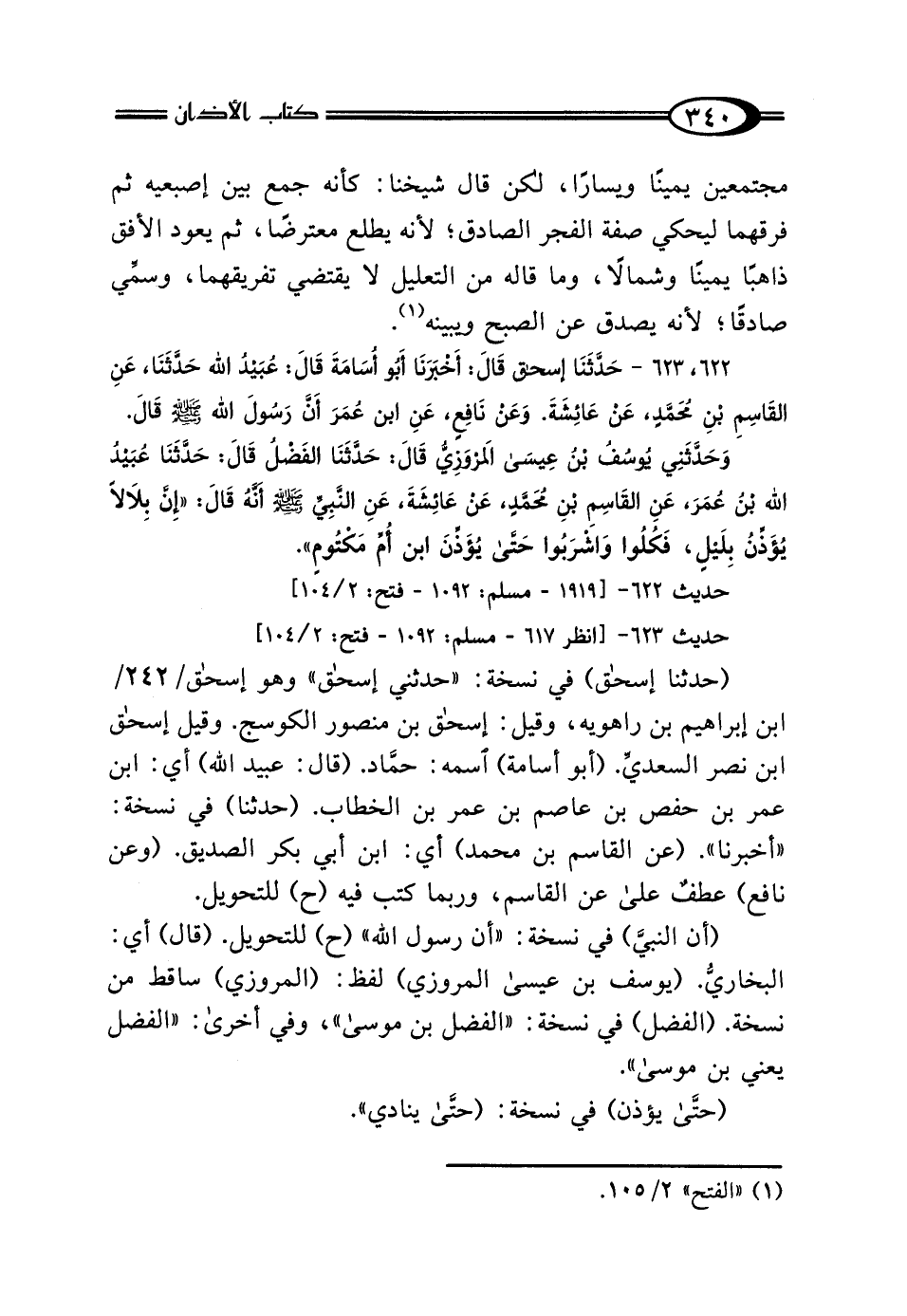 حديث 623 - [انظر 617 - مسلم: 1092 - فتح: 2/ 104]