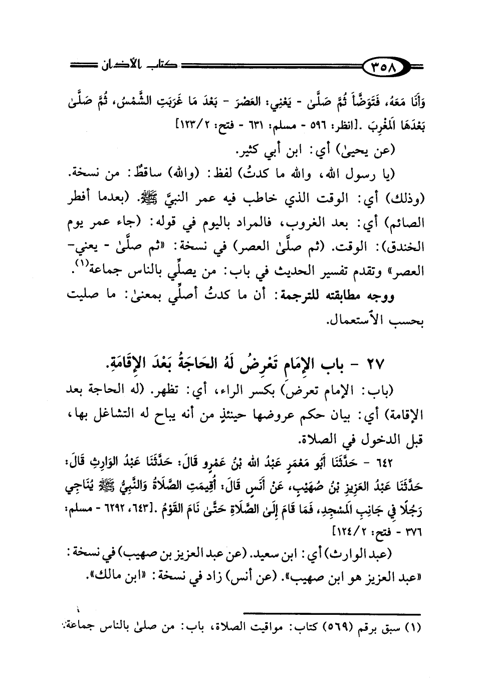 27 - بَابُ الإِمَامِ تَعْرِضُ لَهُ الحَاجَةُ بَعْدَ الإِقَامَةِ