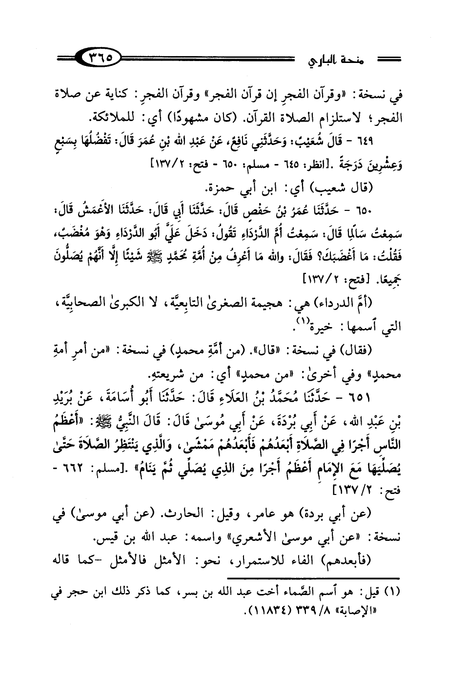 (¬1) قيل: هو اسم الصَّماء أخت عبد الله بن بسر، كما ذكر ذلك ابن حجر في "الإصابة" 8/ 339 (11834).