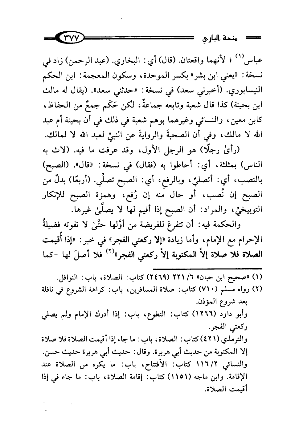 عباس (¬1)؛ لأنهما واقعتان. (قال) أي: البخاري. (عبد الرحمن) زاد في نسخة: "يعني ابن بشر" بكسر الموحدة، وسكون المعجمة: ابن الحكم النيسابوري. (أخبرني سعد) في نسخة: "حدثني سعد". (يقال له مالك بن بحينة) كذا قال شعبة وتابعه جماعة، لكن حَكَم جمعٌ من الحفاظ، كابن معين، والنسائي وغيرهما بوهم شعبة في ذلك في أن بحينة أم عبد الله لا مالك، وفي أن الصحبةَ والروايةَ عن النبي لعبد الله لا لمالك.