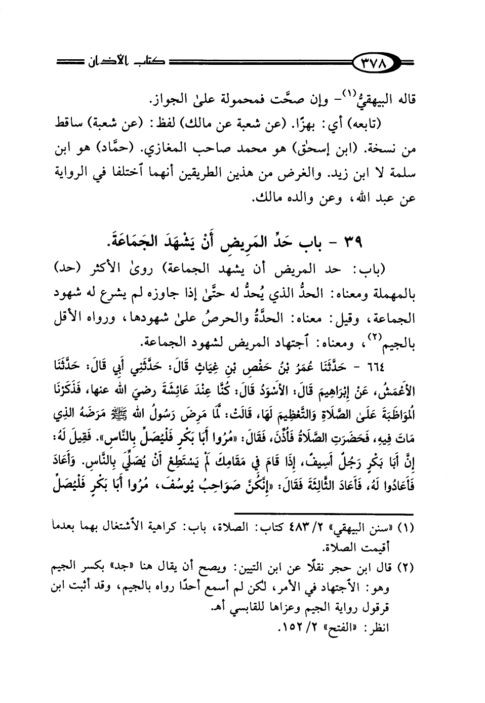 39 - بَابٌ: حَدُّ المَرِيضِ أَنْ يَشْهَدَ الجَمَاعَةَ