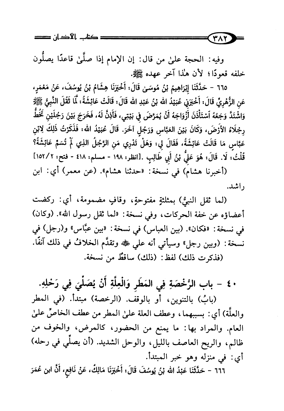 40 - بَابُ الرُّخْصَةِ فِي المَطَرِ وَالعِلَّةِ أَنْ يُصَلِّيَ فِي رَحْلِهِ