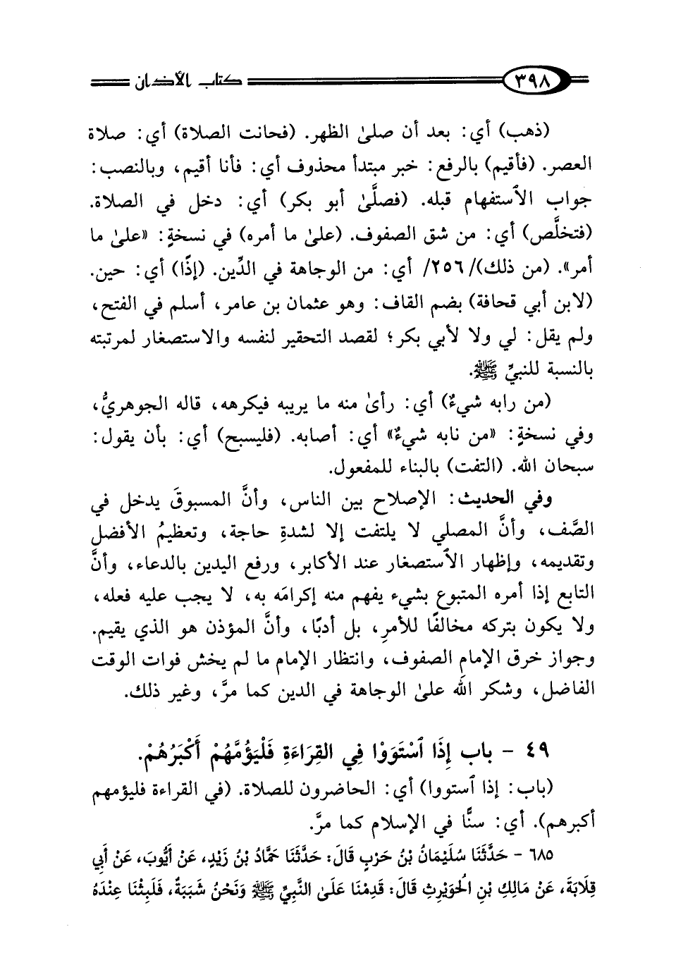 49 - بَابٌ: إِذَا اسْتَوَوْا فِي القِرَاءَةِ فَلْيَؤُمَّهُمْ أَكْبَرُهُمْ