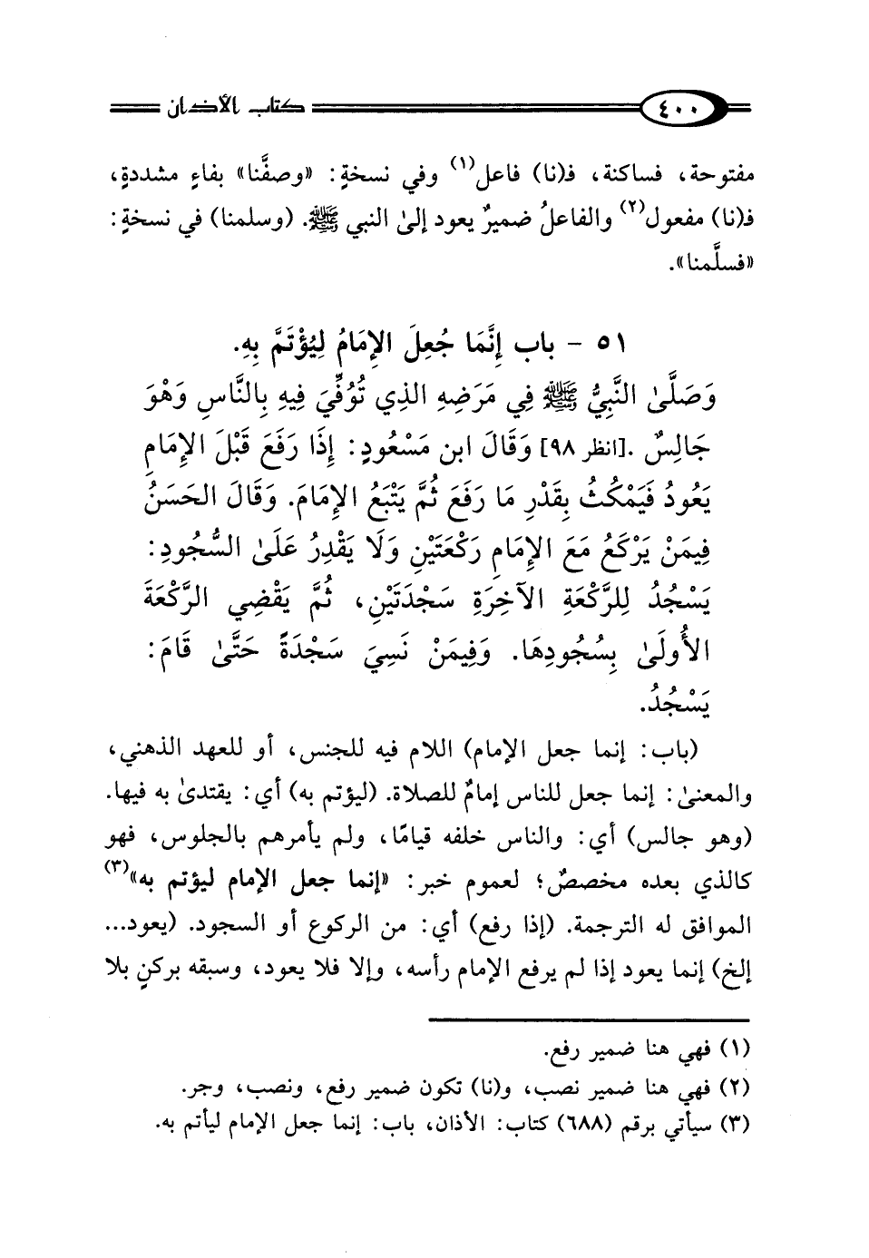 (¬3) سيأتي برقم (688) كتاب: الأذان، باب: إنما جعل الإمام ليأتم به.