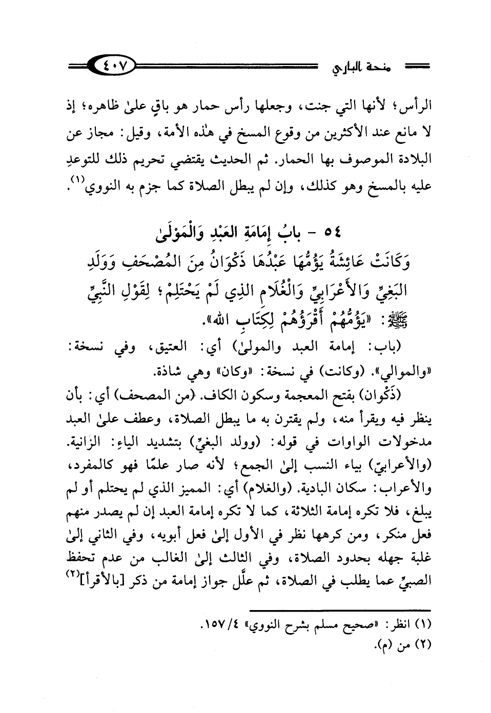 (باب: إمامة العبد والمولى) أي: العتيق، وفي نسخة: "والموالي". (وكانت) في نسخة: "وكان" وهي شاذة.